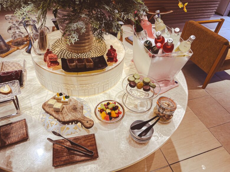 ウエルカムドリンク&お茶菓子は、食べたい物を好きなだけ持っていけるタイプ。