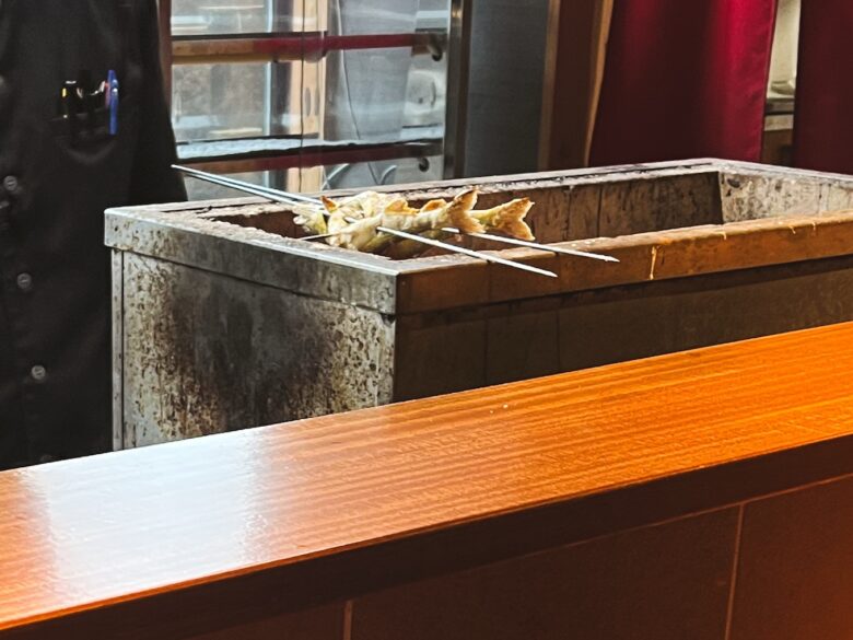 焼き物の鮎は、目の前で仕上げを見れました。