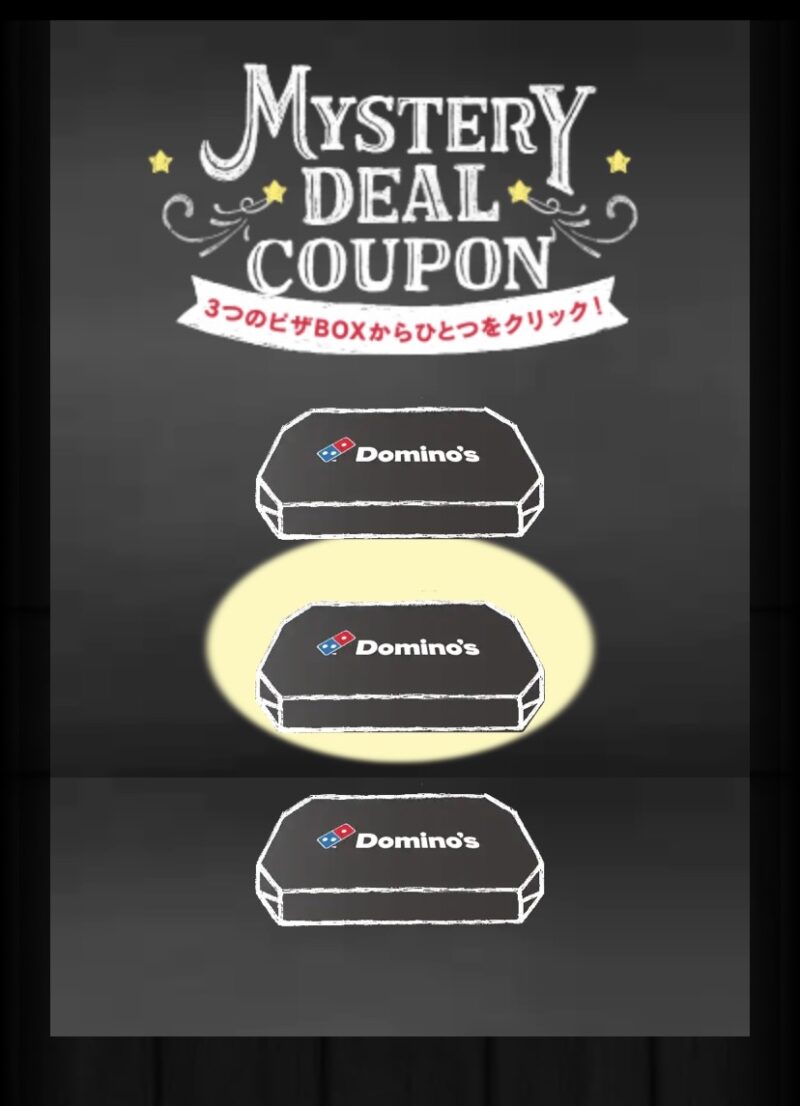 毎回3つの箱の中からクーポンをゲットでき、今まで最高で50%オフ、最低が25%オフでした。