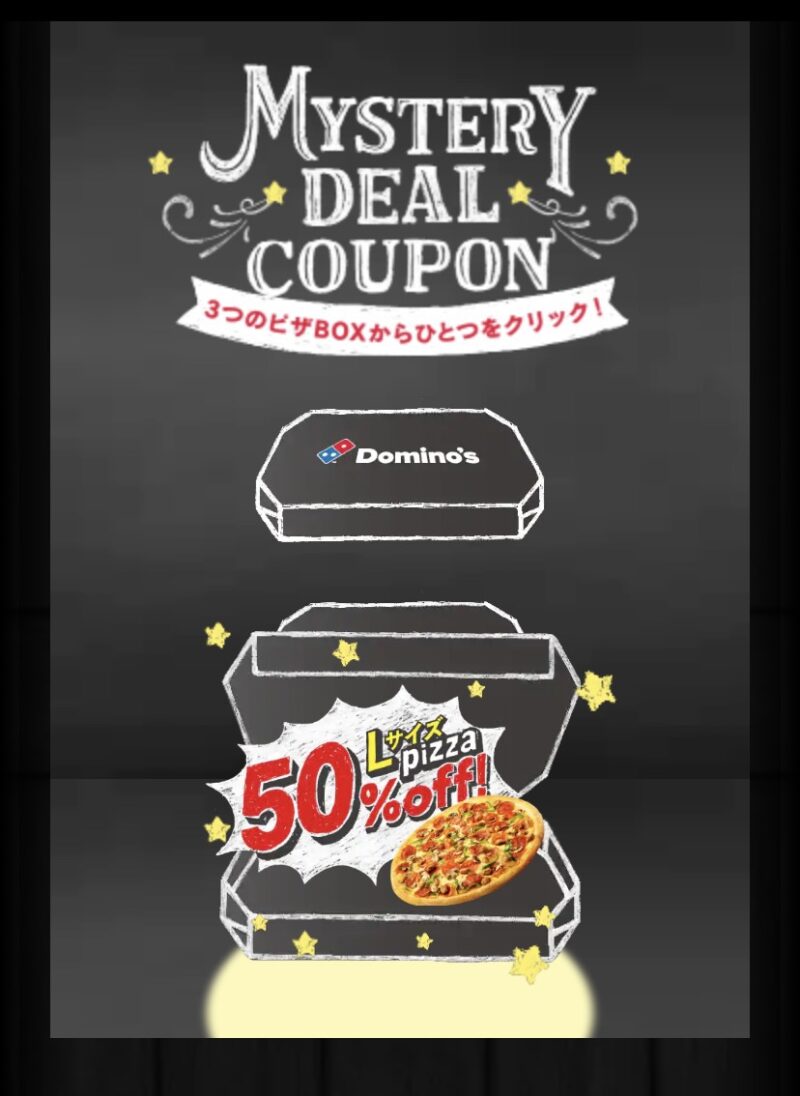 毎回3つの箱の中からクーポンをゲットでき、今まで最高で50%オフ、最低が25%オフでした。