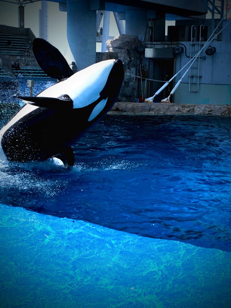 ヒトから餌をもらい、様々な芸を見せてくれるシャチ。