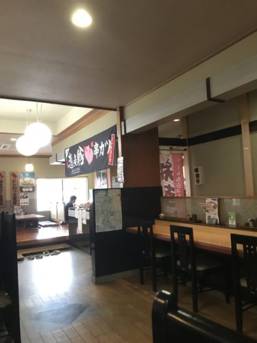 クルマで走りながら、妻に【とんかつの喜太条】をググってもらうと、お昼のラストオーダーが13:30。お参りに行ってからランチしようと思ったけど、あまりに時間がなく、先に【とんかつの喜太条】に行くことにしました。雨の中クルマでぶっ飛ばし、13:25になんとか到着。ラストオーダー間近ということと、雨のおかげかすんなり店に入れました。ただ、駐車場に停まっているクルマのナンバーを見ると、横浜や岐阜の文字が。さすがテレビというか、日本のインスタの女王『ナオミ・ワタナベ』。話題になっているんだと実感しました。